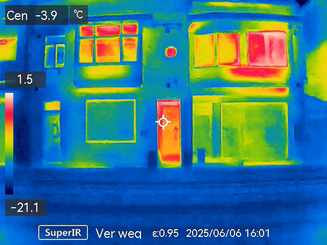 De thermografische quickscan laat zien hoe goed of slecht de gevels geïsoleerd zijn.